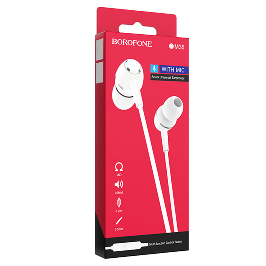 Гарнитура проводная BOROFONE BM36 вставные, кабель 1.2м, белый