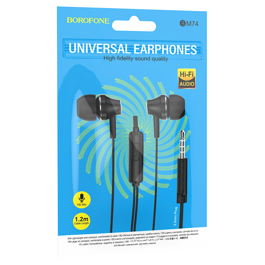 —Гарнитура проводная BOROFONE BM74 вставные, кабель 1.2м, черный